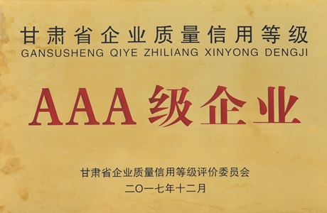 甘肅省企業(yè)質(zhì)量信用等級AAA級企業(yè)