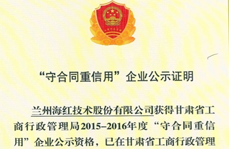 守合同 重信用企業(yè)榮譽(yù)證書