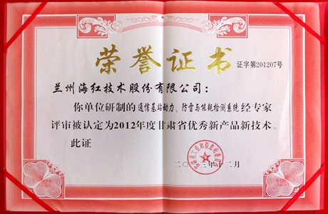 甘肅省優(yōu)秀新產(chǎn)品新技術(shù)榮譽(yù)證書