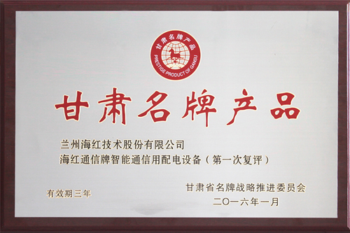 我公司產(chǎn)品再次獲得“甘肅名牌產(chǎn)品”稱號