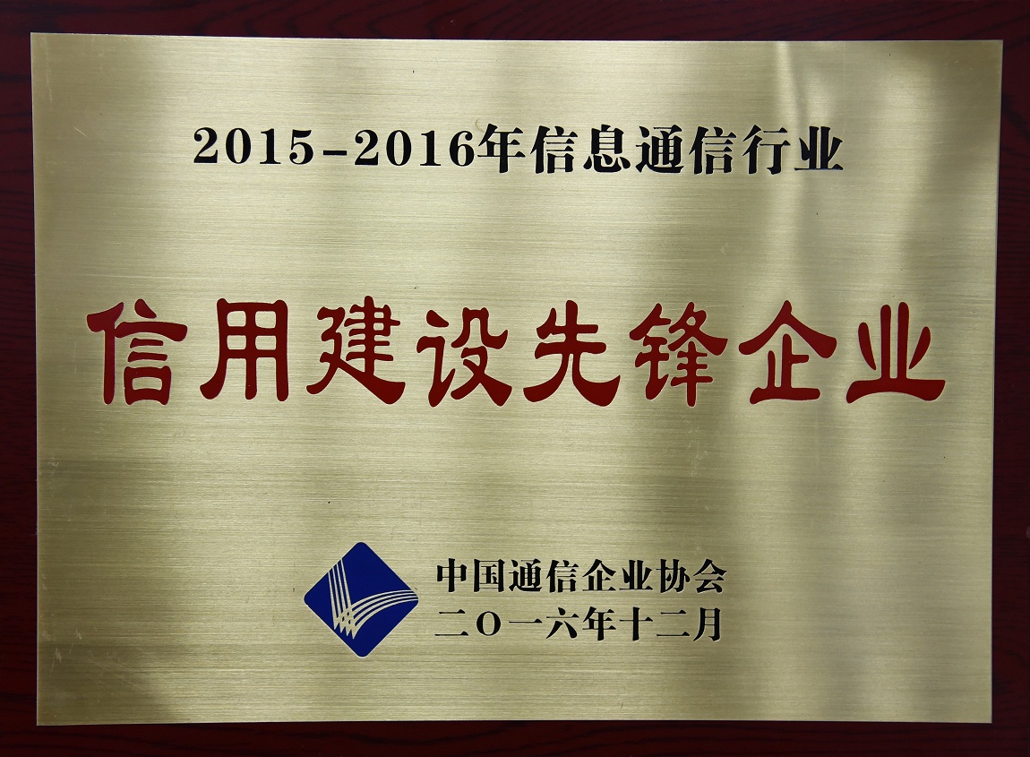 我公司被中國通信企業(yè)協(xié)會評為2015-2016年信息通信行業(yè)信用建設(shè)先鋒企業(yè)