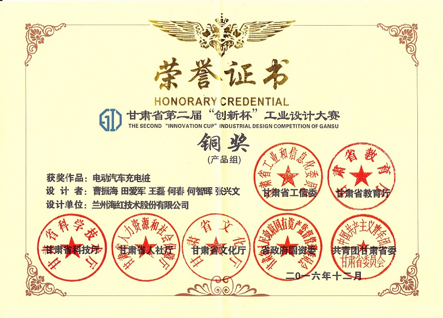 我公司“電動汽車充電樁”產(chǎn)品榮獲甘肅省第二屆“創(chuàng)新杯”工業(yè)設(shè)計大賽(產(chǎn)品組)銅獎
