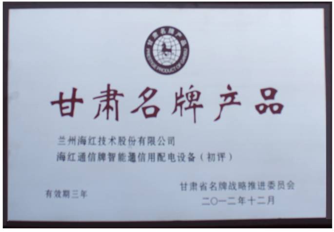 我公司“海紅通信牌智能通信用配電設(shè)備” 被評定為甘肅名牌產(chǎn)品