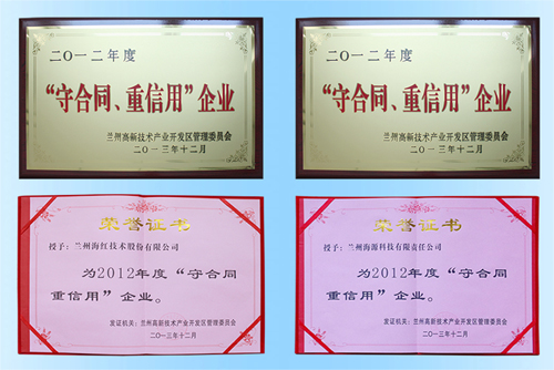 我公司獲得2012年度“守合同 重信用”企業(yè)榮譽(yù)稱號(hào)