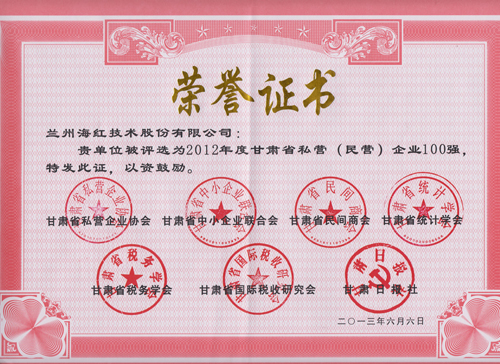 我公司被評(píng)選為“甘肅省私營(民營)企業(yè)100強(qiáng)“單位