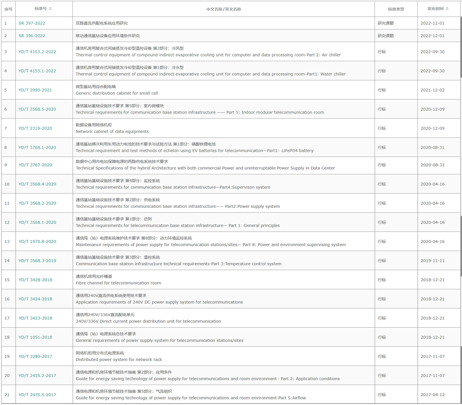 我司參與起草的兩項(xiàng)行業(yè)標(biāo)準(zhǔn)《通信機(jī)房用復(fù)合式間接蒸發(fā)冷卻型溫控設(shè)備 第1部分:冷水型》(YD/T 4153.1-2022)及《通信機(jī)房用復(fù)合式間接蒸發(fā)冷卻型溫控設(shè)備 第2部分:冷風(fēng)...