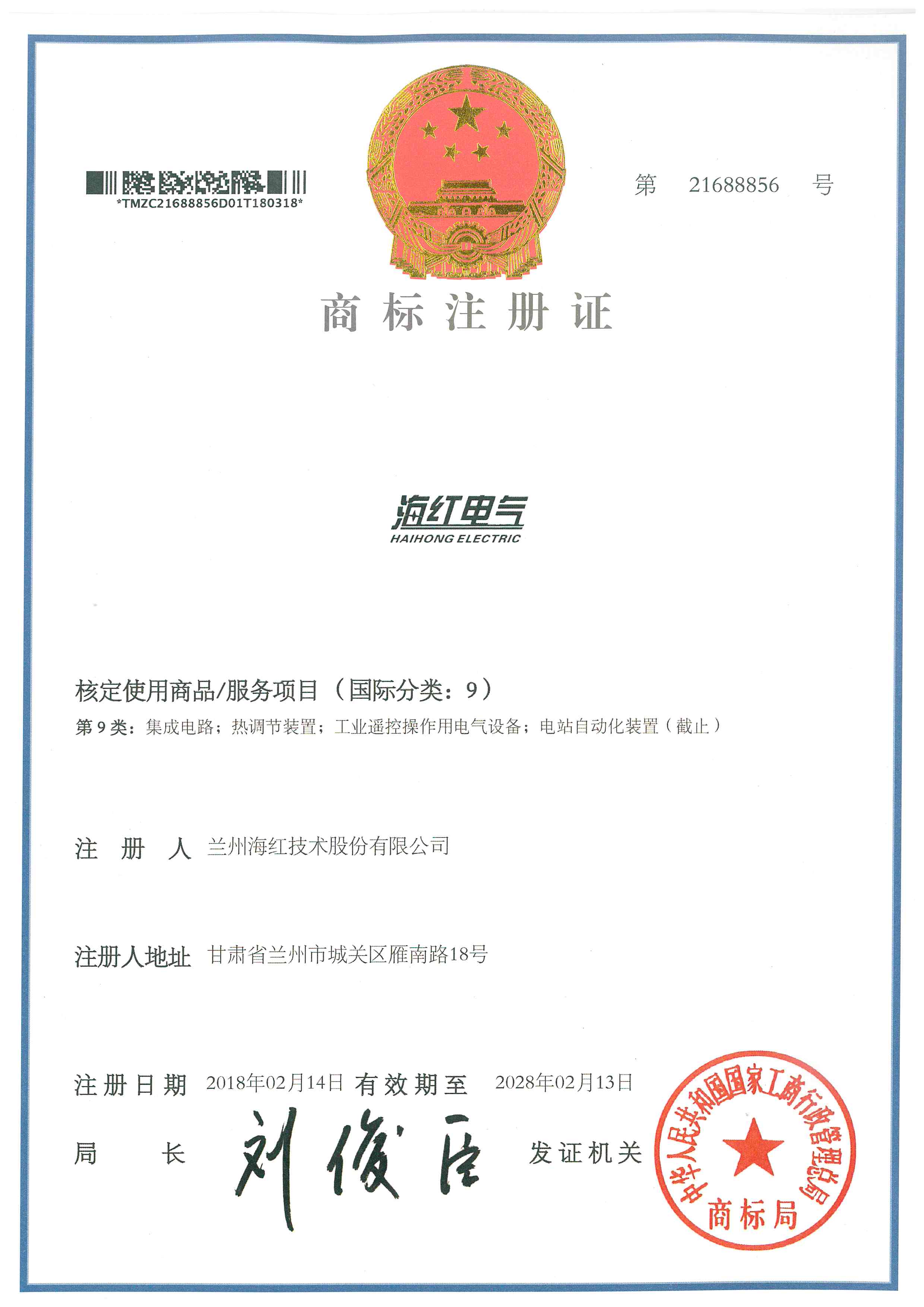 我公司又取得1項由國家工商行政管理總局商標局簽發(fā)的商標注冊證,至此我公司已取得5項商標注冊證。