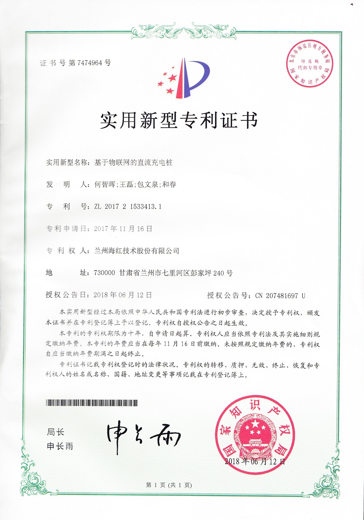 我公司又取得一項實用新型專利和完成兩項計算機軟件著作權(quán),至此我公司申請受理的專利數(shù)累積83項(其中發(fā)明專利17項,實用新型專利55項,外觀設(shè)計專利3項,軟件著作權(quán)8項),已獲得授權(quán)...
