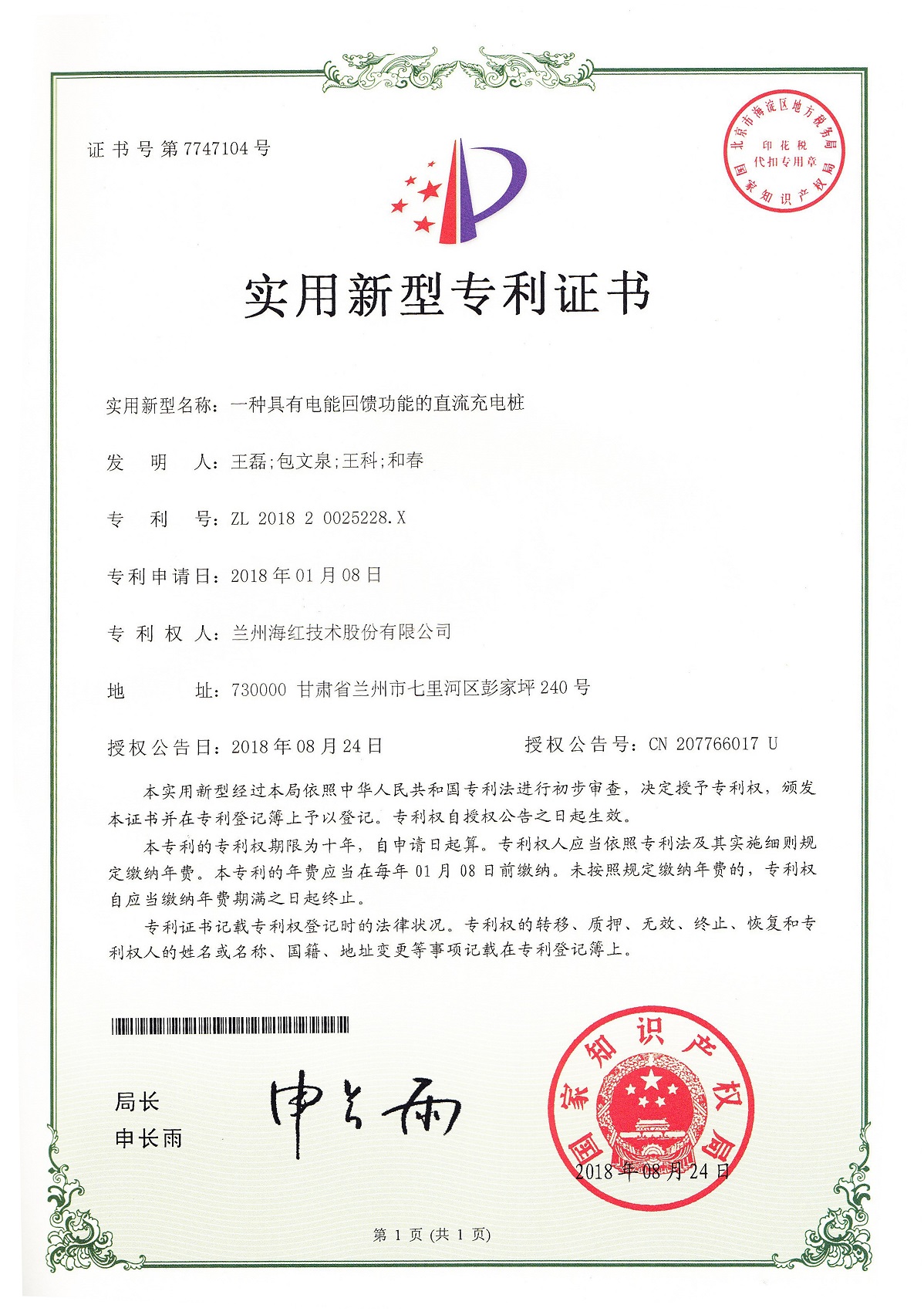 我公司又取得一項實用新型專利,至此我公司申請受理的專利數(shù)累積84項(其中發(fā)明專利17項,實用新型專利56項,外觀設(shè)計專利3項,軟件著作權(quán)8項),已獲得授權(quán)55項(其中發(fā)明專利8項,...
