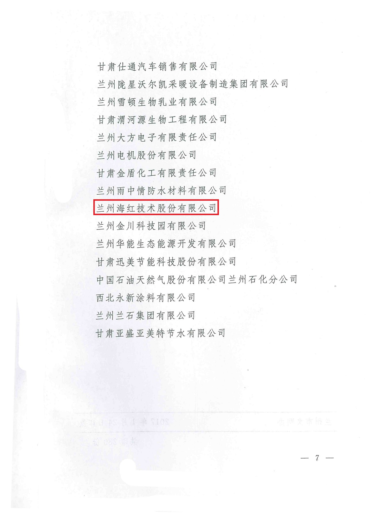 我公司被蘭州市精神文明建設(shè)指導(dǎo)委員會(huì)評(píng)定為蘭州市“百佳誠(chéng)信企業(yè)” By 海紅技術(shù) 2017-05-08 00:00:00 0次 上一篇:蘭州市人大常委會(huì)副主任李虎林一行20余人蒞臨我公司檢查指導(dǎo)工作 下一篇:蘭州交通大學(xué)在我公司建立教學(xué)實(shí)習(xí)基地