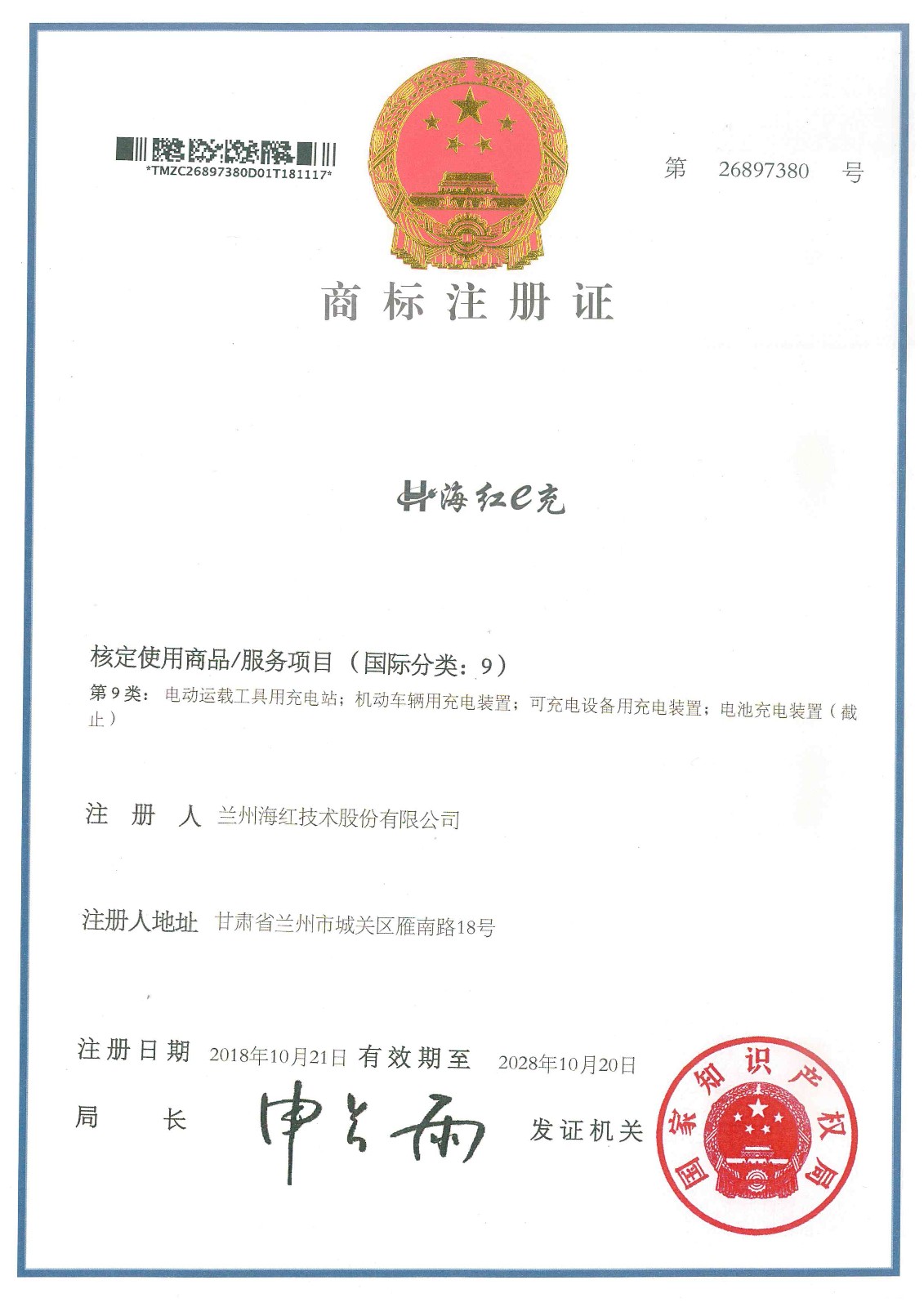 我公司再取得二項(xiàng)商標(biāo)注冊(cè)證 By 海紅技術(shù) 2019-03-14 11:24:37 0次 我公司再取得2項(xiàng)由國(guó)家知識(shí)產(chǎn)權(quán)局簽發(fā)的商標(biāo)注冊(cè)證,至此我公司已取得7項(xiàng)商標(biāo)注冊(cè)證。 上一篇:我公司“用于通信基站智能新風(fēng)節(jié)能系統(tǒng)的監(jiān)控單元”發(fā)明專(zhuān)利榮獲甘肅省專(zhuān)利獎(jiǎng) 下一篇:我公司參與起草的行業(yè)標(biāo)準(zhǔn)《通信電源和機(jī)房環(huán)境節(jié)能技術(shù)指南 第2部分:應(yīng)用條件》已正式出版