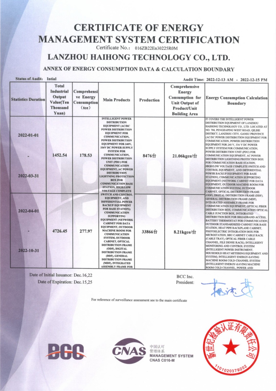 能源管理體系認證是對企業(yè)低碳發(fā)展、綠色發(fā)展的綜合評價,作為一家集科研、生產、銷售和技術服務為一體的智能能源管理整體解決方案及通信、電力、水利水電、新能源設備供應商,我司積極響應國家節(jié)能減排政策,持續(xù)加大技術創(chuàng)新與投入,降低運營能耗、提高設施設備節(jié)能性能,對于重點用能設備,分設備、分區(qū)域設定能耗目標,及時監(jiān)控用能情況及節(jié)能降耗目標實現(xiàn)情況;對用能設備、能耗種類、能源使用方式、能源流向、能源績效參數以及生產、工藝用能情況等方面進行了系統(tǒng)分析,深度挖掘節(jié)能改造空間,不斷改進,高效推進能源管理工作。