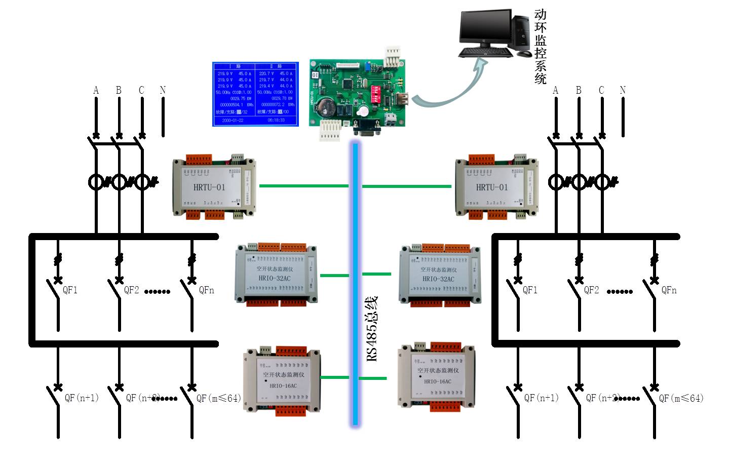 3、雙路之間相互獨(dú)立,弱電與強(qiáng)電部分完全隔離,運(yùn)行安全、可靠。各單元之間均采用RS485通信總線結(jié)構(gòu)相連接。接線、安裝、調(diào)試非常方便。