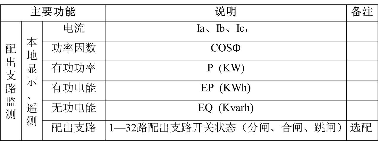 3、具有母線電壓、功率因數(shù)、頻率、總電流、總有功功率、總有功電能,多個(gè)重要配出回路的電流、功率、電能,以及各配出支路開關(guān)狀態(tài)的監(jiān)測(cè)和顯示功能。