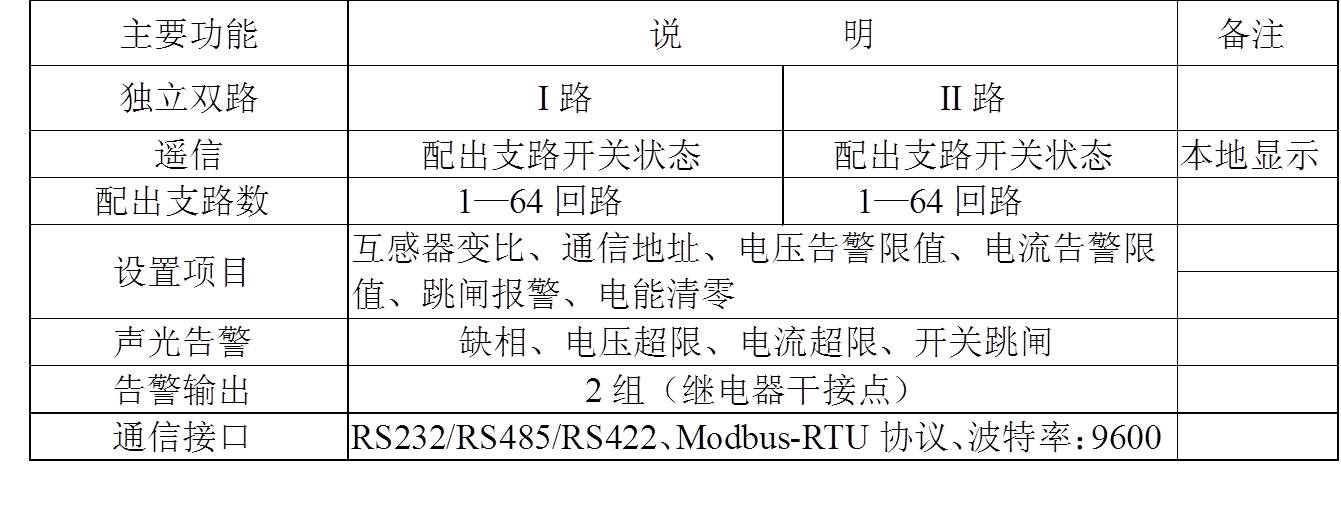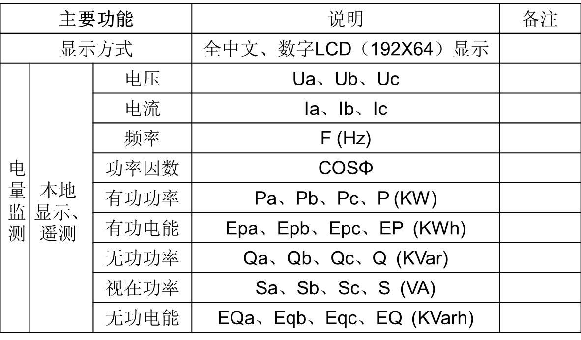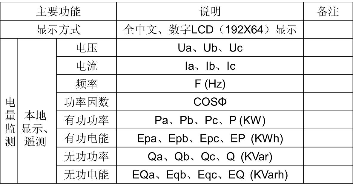 2、具有配電設(shè)備有功、無功、視在功率,電壓、電流有效值、功率因數(shù)、交流頻率,有功、無功電能等參數(shù)的測(cè)量和計(jì)量。監(jiān)測(cè)每個(gè)支路的開關(guān)狀態(tài),并具有重要支路的跳閘報(bào)警功能。