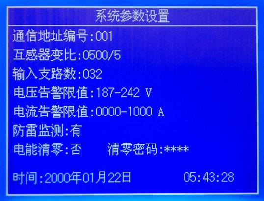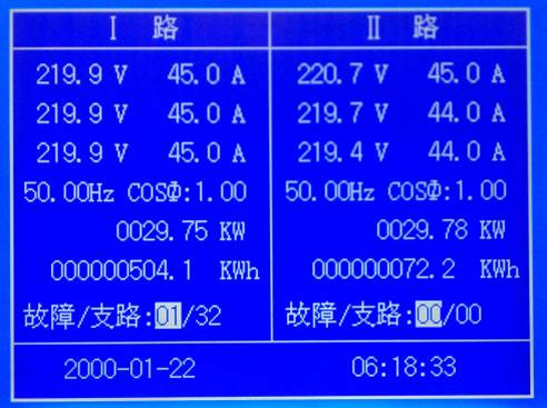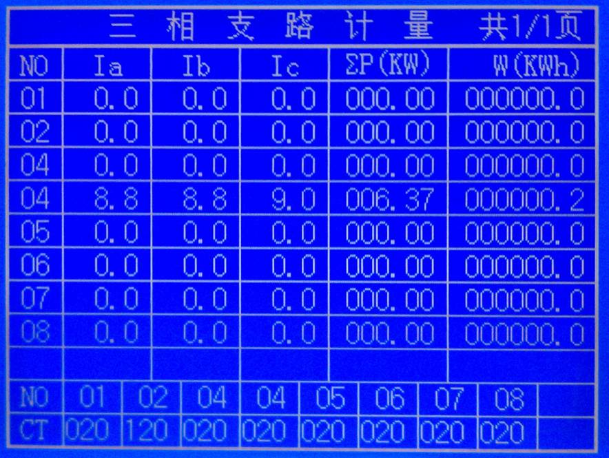 5、配出支路電量檢測(cè)、計(jì)量顯示界面(三相回路)