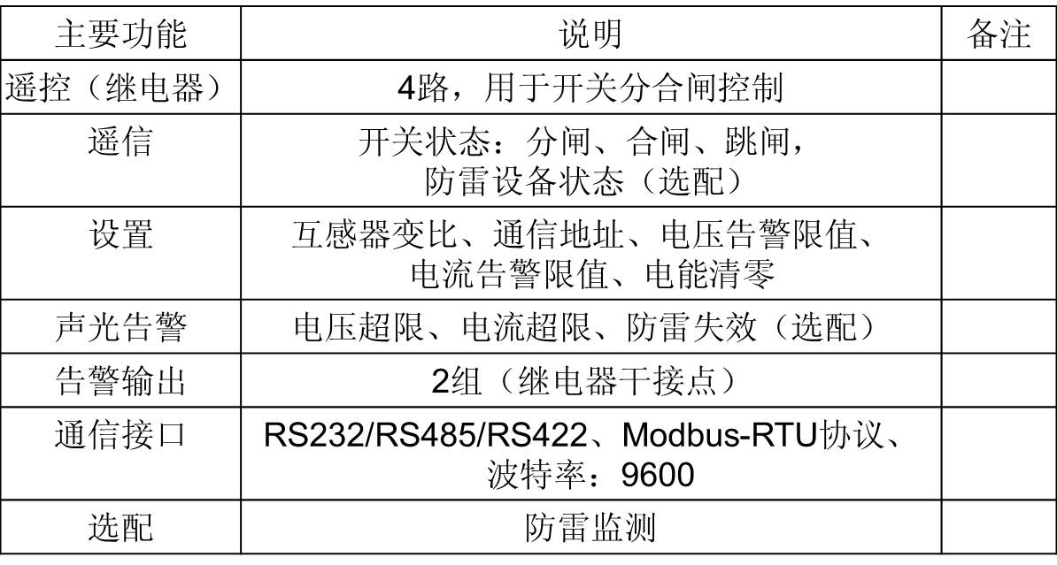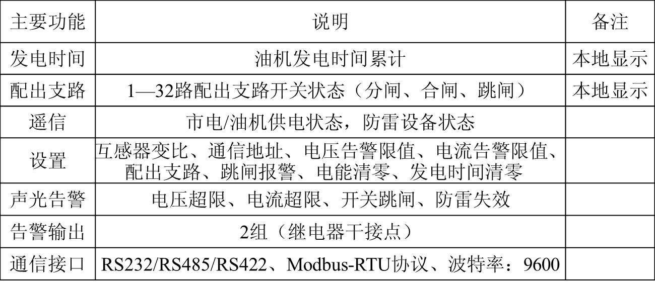 4、具有電流超限、電壓超限、缺相以及配出支路斷路器跳閘故障聲光告警功能,并提供2組故障告警繼電器輸出接口。