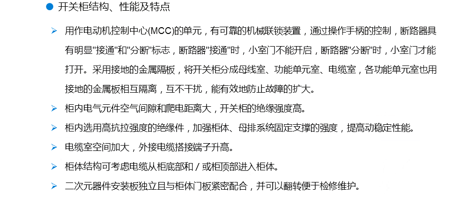 ?優(yōu)良的分隔形式,充分保證人身設(shè)備的安全,母線和功能單元隔離;功能單元之間互相隔離;出線端子與功能單元之間隔離。